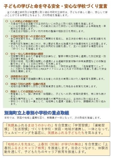 お知らせ 【上春別小学校】 2026年04月06日 NEW 【上春小】子どもの学びと命を守る安全・安心な学校づくり宣言 -