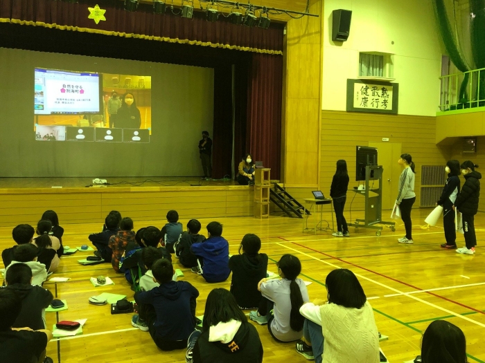 6年生が「10年後の別海町の町づくり」について総合的な学習の時間を中心に考えてきました。持続可能な町づくりを目指すため、「課題」を見出し、「課題解決」のために自分たちができることについて調べ、考え、まとめたことを現在実際に町づくりに携わっている町議会議員の方々にプレゼンすることになりました。当初、議会に足を運び直接お話を聞いてもらう予定でしたが、コロナ蔓延防止のため急遽オンラインでのプレゼンとなりました。