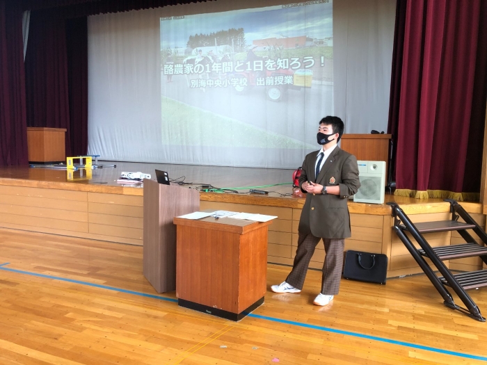 4年生の総合的な学習「別海町PR大作戦」の第1幕「わが町の誇り!酪農業!」について、先輩が出前授業に来てくれました!別海高校の高校生を講師にお招きし「酪農家の1年を知ろう!」をテーマに授業を展開してくれました。