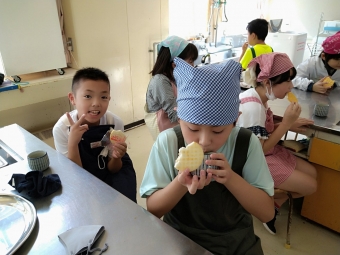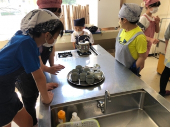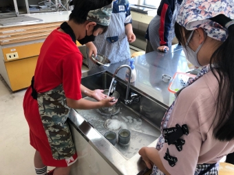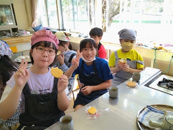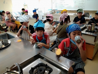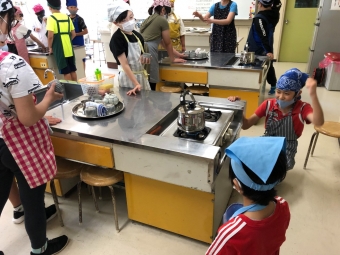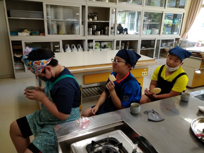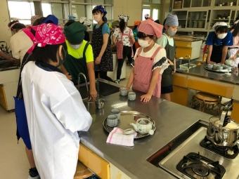 お湯を沸かし、急須に茶葉をいれ、湯呑に注ぎ、茶菓子とともに味わう・・・ところまで学習しました。中央小学校の家庭科室のコンロはガス式なのですが、ご家庭の調理器具が「IH調理器」なので「炎が出て怖かった。」という感想をもつ人もいました。