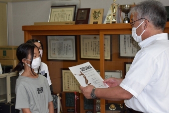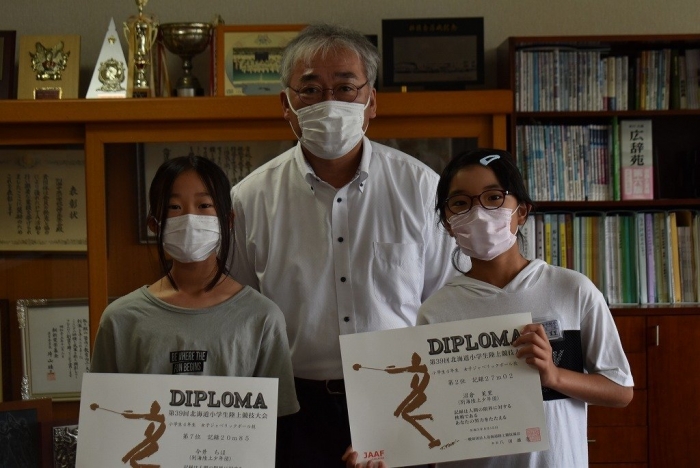 ☆別海中央小学校☆陸上少年団の表彰が行われました。 2021年08月31日(火) 少年団・部活動 夏休み中に行われた全道大会に出場し、入賞した中央っ子の表彰が校長室で行われました。 それぞれ参加した種目にて2位と7位という素晴らしい成績をおさめました。 これからも練習に励み、さらなる記録更新を目指し努力を続けてほしいと思います。おめでとうございました。