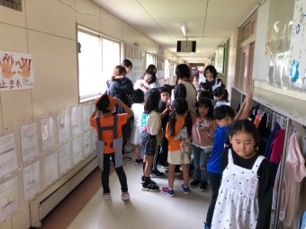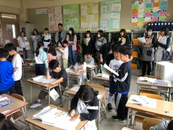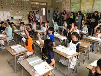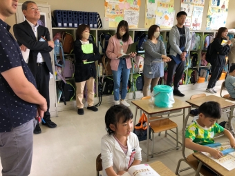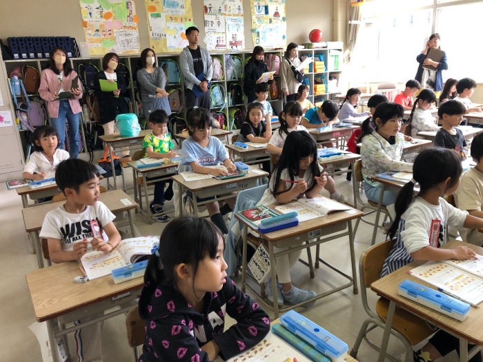 保育園、幼稚園の先生が成長した1年生の姿を参観に来てくださいました。子どもたちは、保育園、幼稚園の先生が来てくれて大喜び!いつにも増して張り切って学習に取り組んでいました。