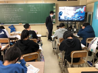 今年度は、地域連携の取り組みとして、小学校と中学校の授業交流を行っています。社会科において、9月には中央小学校教諭が中央中学校へ行き、今回は中央中学校の先生が中央小学校に来て授業を行いました。