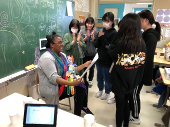 今年度は外国語や外国語活動で、4人のALTのみなさんにお世話になり一緒に楽しく学んできました。その中のお一人、ディー先生はこの3月でこの別海町を離れることになったそうです。子どもたちは、大好きな、お世話になったディー先生に感謝とはなむけの言葉を伝えようと、各教室で最後の授業に向けて計画を立てていました。
