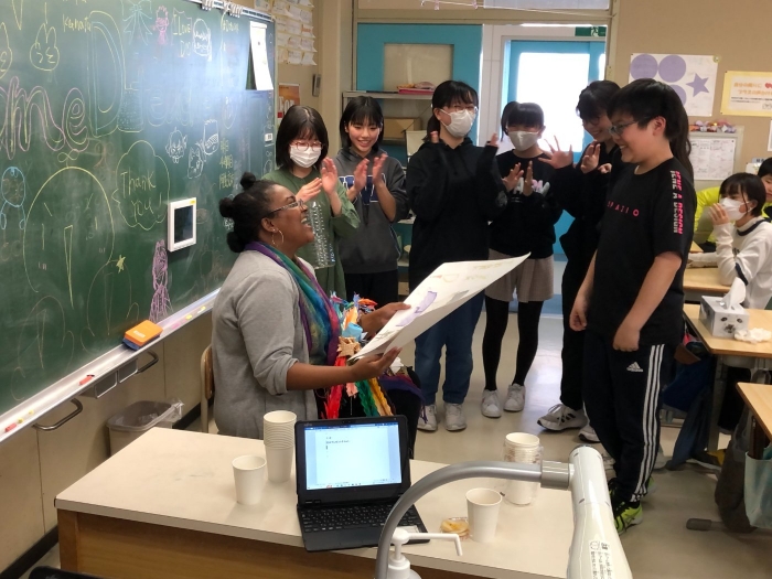 中央小での最後の授業は、高学年4クラスで行われました。どの教室でも、これまでに学んだ外国語でのコミュニケーション力を生かし、温かい雰囲気と笑顔(と、ちょっぴりの涙)に包まれた一時間を過ごしていました。