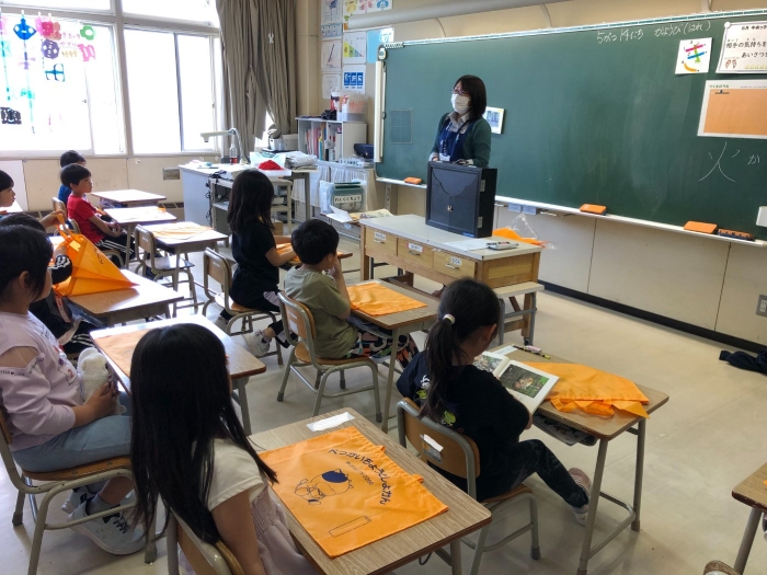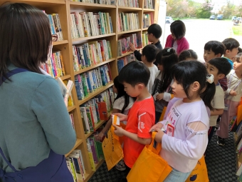 ☆別海中央小学校☆初めての図書バス(1年生) 2024年05月14日(火) 日々のできごと 別海町図書館の移動図書バス「白鳥号」がやってきました。「初めての」・・・と、書きましたが、ほとんどの児童が「幼稚園の時に利用したことある!」「保育園の時、借りたよ!」と言っていました。 図書館の司書さんが、図書バスの利用の仕方を紙芝居を使って説明してくれました。その後は真新しいカードを持っていざバスの中へ。およそ2500冊あるといわれている本に目を輝かせる1年生の皆さん。「5冊借りよう!」「私はリクエストカードで予約するわ」等々・・・。本の世界を満喫する姿が見られました。
