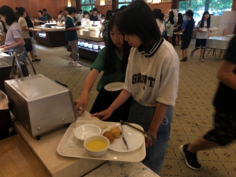 ︎ ⭐︎別海中央小学校⭐︎6年生修学旅行 朝食 2024年07月19日(金) 日々のできごと 朝食もバイキング。一般の方より少し早く会場に入らせていただきました。今日はアウトドアでのアクティビティを行う人たちもいるので、朝食は大事ですね。昨日同様、バランスよく組み合わせた一食を作っていました。