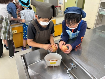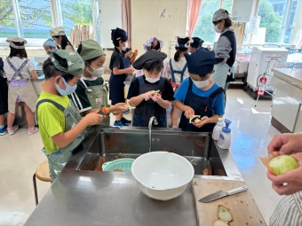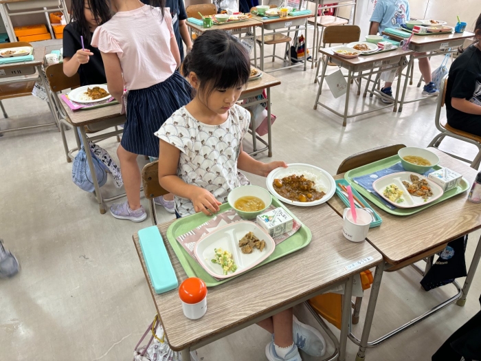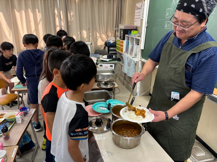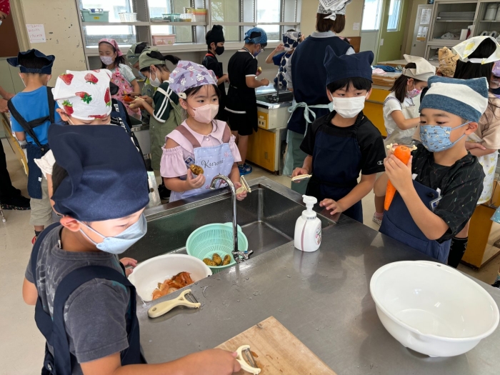 ☆別海中央小学校☆めざせ野菜作り名人~おいしく食べよう~(2年生生活科) 2024年09月19日(木) 日々のできごと 2年生の生活科で育た野菜を収穫する時期になりました。採れた野菜をおいしくいただこう!ということで「カレー」を作りました。 「いもが小さくて皮をむきにくい!」「先生!お肉はこれくらいの大きさでいいですか?」安全に気をつけ、協力して調理しました。後始末もばっちり! 給食の時間にもりもりおいしくいただきました。実りの秋。自分たちで育てた野菜を自分たちで調理して食べることはこんなにも楽しいことなのですね。