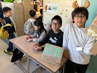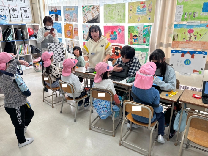 各班で趣向をこらしたお店を展開し、高学年、低学年力を合わせてお客さんを楽しませていました。また、自分たちがお客さんになる時にも、低学年の興味や関心を尋ね、その気持ちを尊重してお店を巡るなどの協力をしていました。
