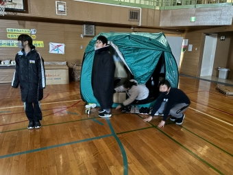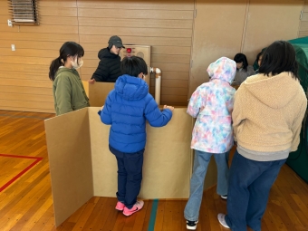 ☆別海中央小学校☆プチ避難所体験(5年生総合) 2024年12月24日(火) 日々のできごと 先日、別海町役場防災基地対策課の方を講師にお招きし、5年生総合「安心安全な町づくりとそれを支える人々」の学習の一環としてプチ避難所体験を行いました。 冬の避難所のシミュレーションするため、暖房を切り、防寒着を着て活動しました。段ボールベッドやテントなどで避難所の様子を再現し、電灯を消してカーテンを閉め夜の避難所も経験してみました。 疑似体験ですが、多くの気づきがあり、新しい課題も見出したようでした。
