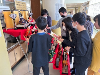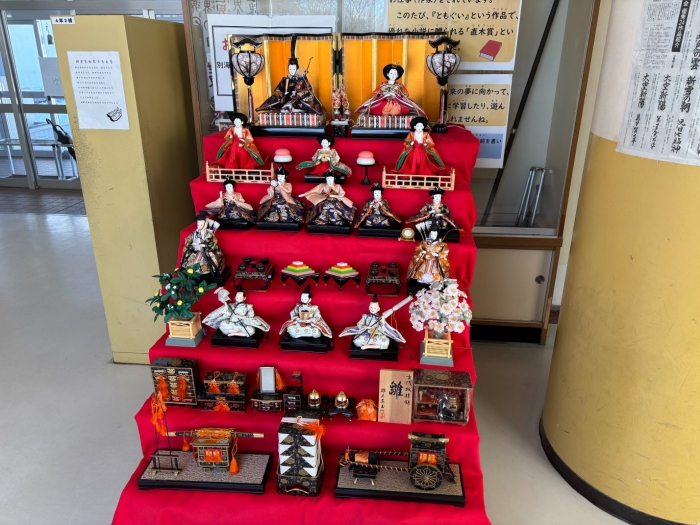 ☆別海中央小学校☆ひなかざり 2025年02月26日(水) 日々のできごと 中央廊下にひなかざりがお目見え。飾ってくれたみなさん、ありがとうございます!いろいろな学年が立ち止まって見ています。そばにいた児童に尋ねるとお家でひな人形を飾ったり、ひなあられや桜餅などを食べてお祝いすることはない・・・という回答が多かったです。 ひな人形を眺めて、桃の節句の気分を味わってみるのもよいですね。