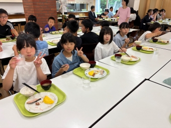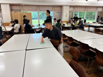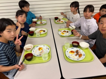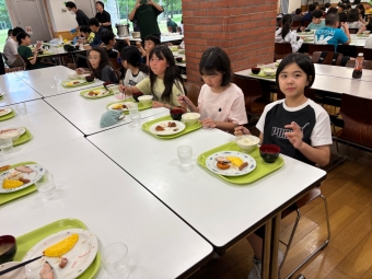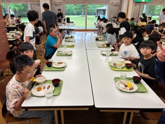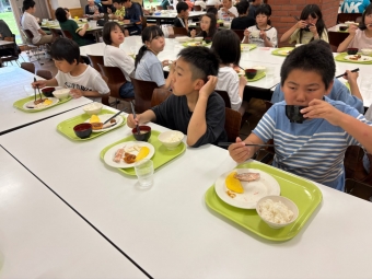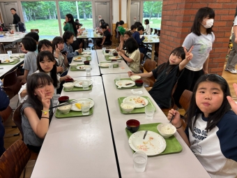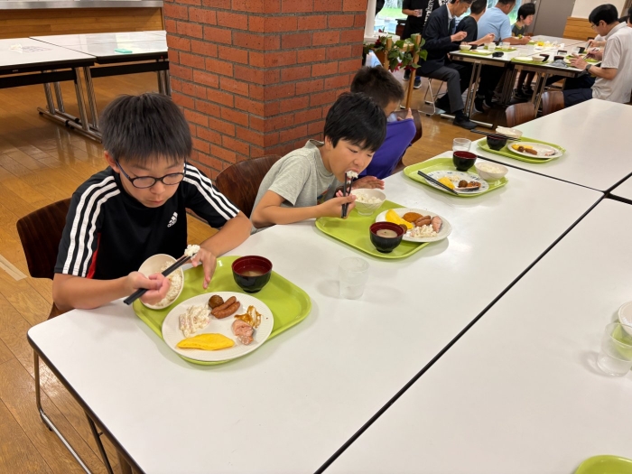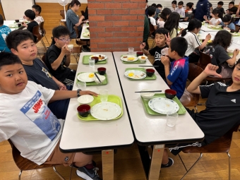 ⭐︎別海中央小学校⭐︎5年生宿泊学習 朝食 お部屋片付け 2025年06月27日(金) 日々のできごと お部屋を片付けて朝食へ。お味噌汁、ご飯、おかずを盛り付けて「いただきます!」あまり食が進んでいない人もいました。普段から朝はあまり食べないのかもしれません。 班ごとに食器をまとめて返却する時に厨房の中の調理員さんに「ごちそうさまでした」と声をかけてから立ち去る人が幾人もいました。お世話になった人に感謝の気持ちを言葉で伝えられる習慣…素敵です。