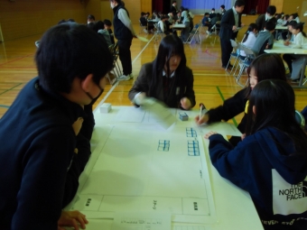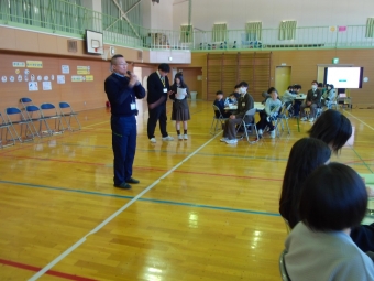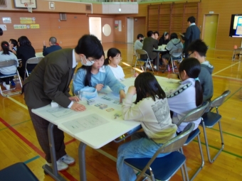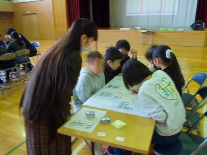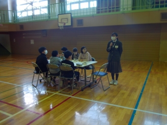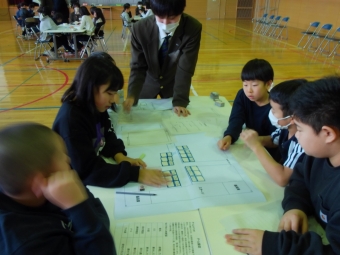 5年生の総合的な学習の出前授業で別海高校防災Schoolの皆さんが来校されました。高校生は避難所運営ゲーム「Doはぐ」のプロです。初めての経験の5年生に対して、考える際のポイント、幅広く意見を聞く姿勢などを優しく分かりやすくアドバイスしてくれました。高校生の方からも「いつもの高校生同士で行う時と違う視点の意見が出て、勉強になった。」と振り返っていました。「Doはぐ」の後は、高校生とランチ交流もできました。学びの多い時間になりました。