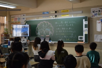 3学期始業式はリモートで行いました。校長室から3学期の「自進人」「二つのあ」「いじめをゆるさない」について校長先生からメッセージがおくられました。また、新しい年を迎えるにあたり、4月の進級を見通した「新しいリーダー像へのステップアップ」についてのお話もされました。子どもたちは、画面越しではありましたが、校長先生からのメッセージを受け止めている様子でした。