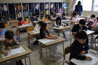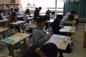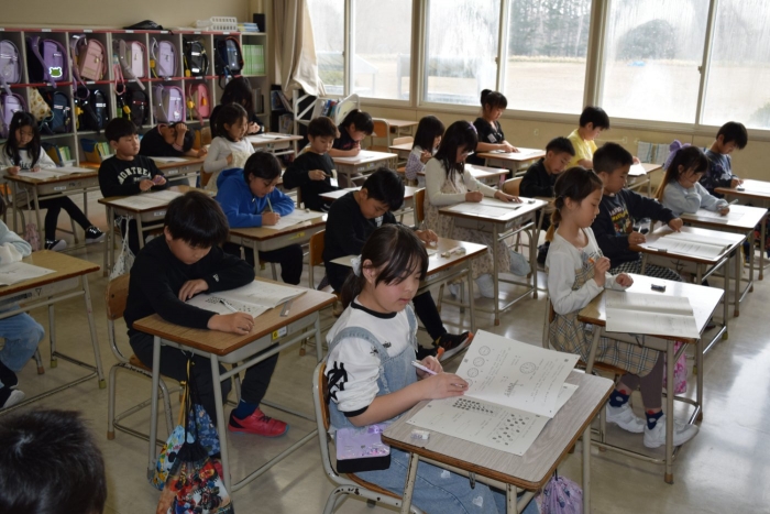 昨日と今日の二日日程で、2年生から6年生が昨年度までの学習内容の定着度をみる学習調査を行いました。全町で一斉に行っています。2年生と3年生が国語と算数の2教科、4年生以上が国語、算数、社会、理科の4教科に取り組みました。一生懸命、粘り強く問題に取り組む姿が見られました。