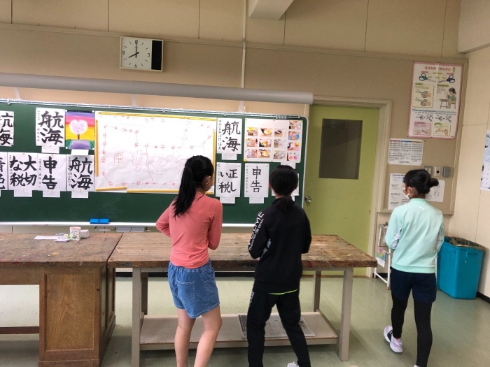 夏休みが終わり、元気な子たちの姿が学校に戻りました。子どもたちの夏の学習の成果を「夏休み作品展」で公開しています。今年の作品類は「コロナ」「オリンピック」「100周年」に関わるものが多い印象です。低学年は家庭科室、中学年は理科室、高学年は図工室を会場に20日(金)まで公開しています。保護者の方もお時間がありましたら放課後も開いておりますので是非いらしてください。