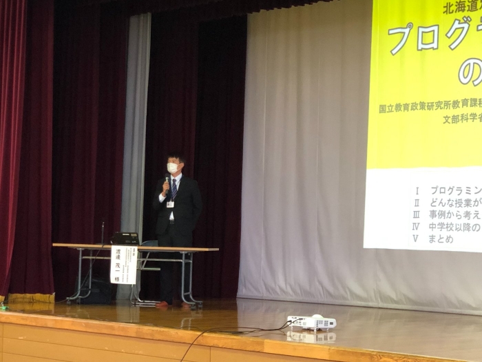昨日、別海町地域連携研修が行われプログラミング教育についての講演会が行われ、国立教育政策研究所教育課程研究センター研究開発部 教育課程調査官 渡邊 茂一 氏を講師に迎えプログラミング教育についての講演会を行っていただきました。