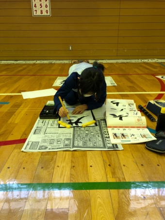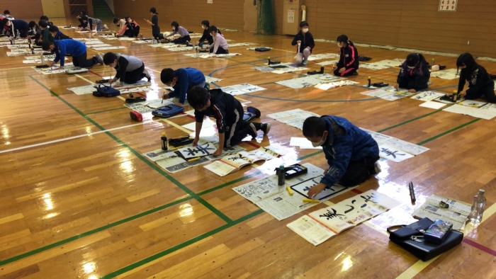 今日は3つの学年で「書初め大会」が行われました。平安時代の宮中行事として始まったといわれている「書初め」。年の初めに恵方を向いて賀詞や詩歌を書くこの「書初め」の文化が江戸時代の寺子屋の普及で庶民にも広まったといわれています。