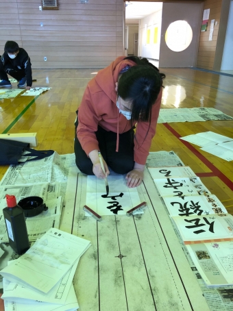 これまでに書写の学習を通して学んできたことを生かし、BGM「春の海」の調べに乗せて、それぞれの学年の課題に向かい、伝統文化を味わいました。