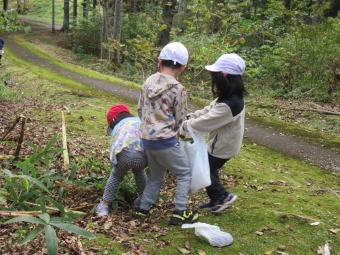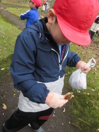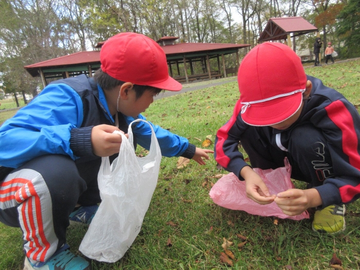 先日、秋を探しに町内の「いこいの森」「別海神社境内」へ探検に出かけた1年生。