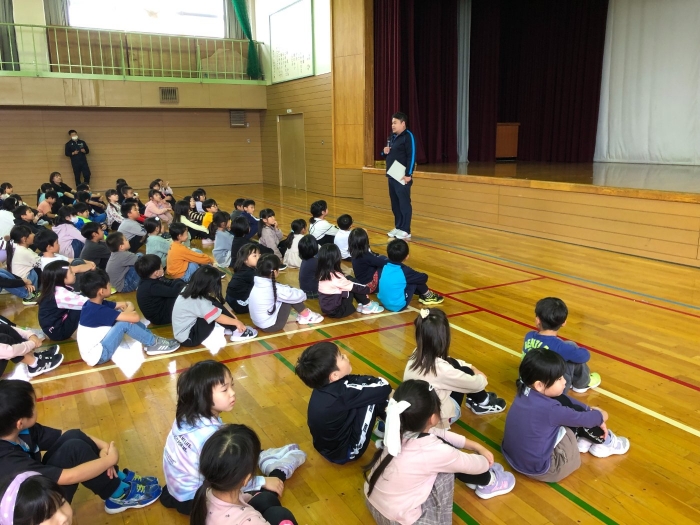結果発表の後、保体部の先生から「第2回玉入れ選手権」の告知があり子どもたちの目がきらっと輝いたところで昼集会が終わりました。