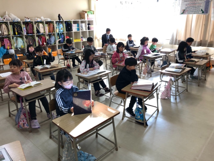 各担任の先生もはいつも教室で子ども達と一緒に読書していますが、たっぷり読書月間の11月は、校長先生、教頭先生も校長室、職員室をとびだして、各教室にお邪魔し、子ども達と一緒に「朝読書」を楽しんでいます。