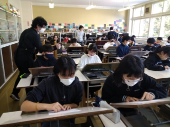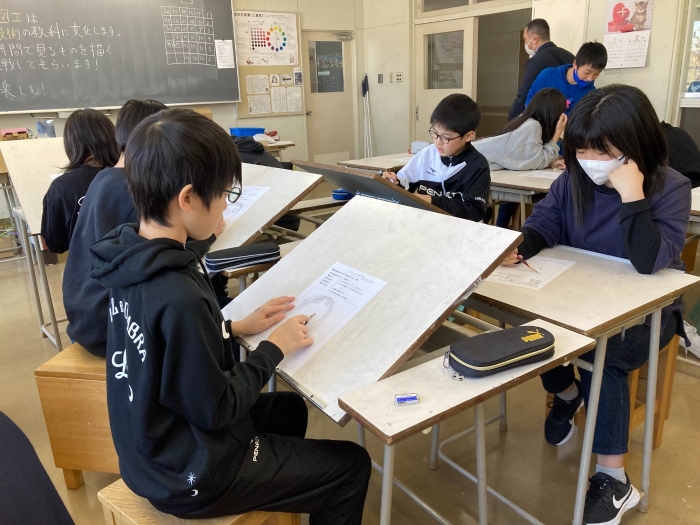 6年生は先輩たちの授業を参観して雰囲気を味わったり、美術の授業を体験したりしました。
