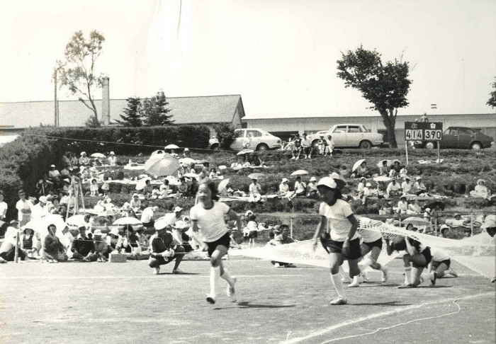 西別小学校 運動会 校舎側(手前)、神社側(奥)にたくさんの応援