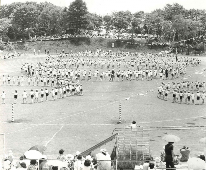 西別小学校 現郷土資料館付近に校舎があり、校舎と現道道との間がグランドだった。その場所での運動会。