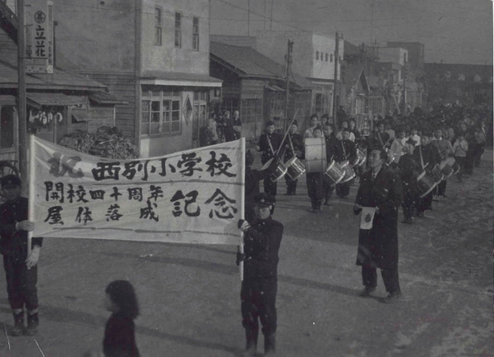 西別小学校開校40周年及び体育館落成記念パレード(旧駅前通り 奥に駅)