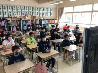 2学期が始まりました。始業式はリモートで。校長先生のお話、学年代表の児童から「夏休みの思い出と2学期の抱負」のお話がありました。