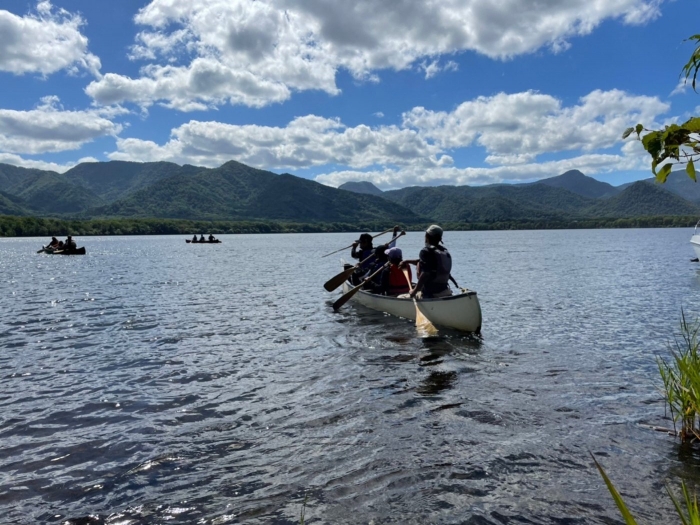 「カヌー体験」「アイヌ資料館」チームから活動の様子の写真が届きました。川がとても綺麗ですね!