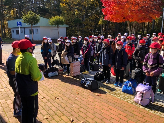 到着しました。見事な秋晴れ。美しい海を眼下にバスは順調に進みました。到着式を終えて入館しました。
