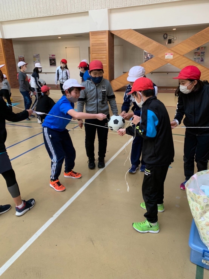 協力してボールを運べ!集中力と協力が試される活動です!続々成功の歓声があがります!