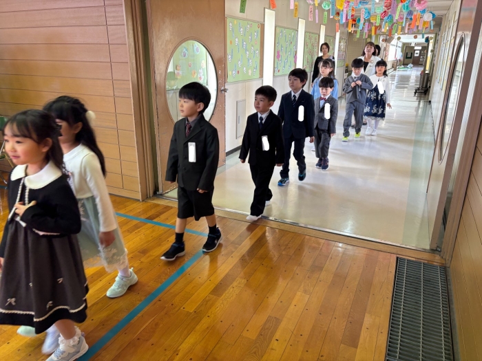 1年生は会場の大勢の人から拍手をおくられ、少しびっくりした様子でしたが、担任の先生にお名前を呼ばれると大きな声で返事をし、お兄さんお姉さんに顔を見せることができました。