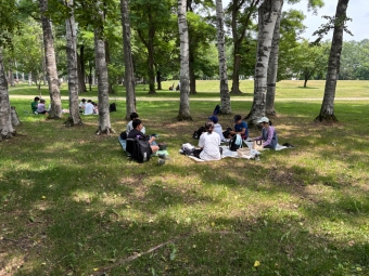 ⭐︎ 別海中央小学校⭐︎6年生修学旅行 気持ち良い公園 美味しいお昼ご飯 2025年07月03日(木) 行事 まるでスーラの絵のようです。帯広緑ヶ丘公園はちょうど良い気温、風。エゾリスさんが仲良く木登りをしています。栗の木の花が満開。季節をだいぶ先取りしています。 家族が用意してくれたお弁当を美味しくいただいています。ありがとうございました。 ここに至るまでのバスの中ではレク係の方が大活躍だったようです。