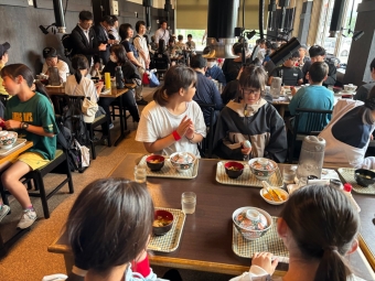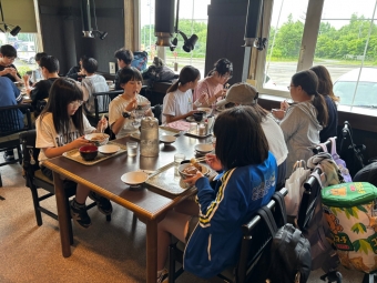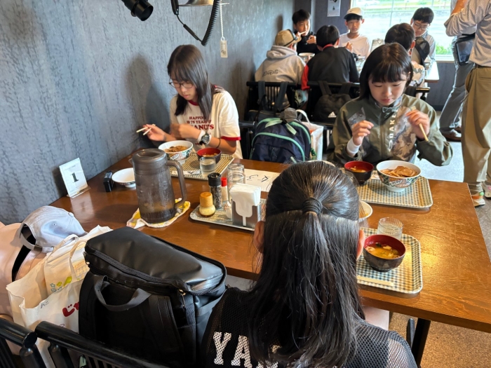 ⭐︎ 別海中央小学校⭐︎6年生修学旅行 昼食 帰路へ 2025年07月04日(金) 行事 昼食会場で、川下りチームとアイス作りチームが合流。豚丼をいただきました。 あとは思い出をもって別海に向けて帰るだけです。