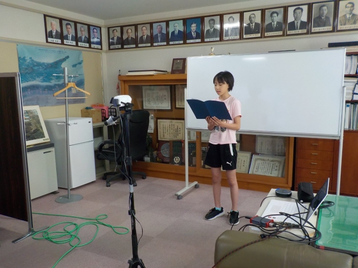 各学年の代表児童が1学期の振り返りと夏休みの展望についてお話しました。各教室では、テレビ越しではありましたが、よく聞き、拍手をおくっていました。