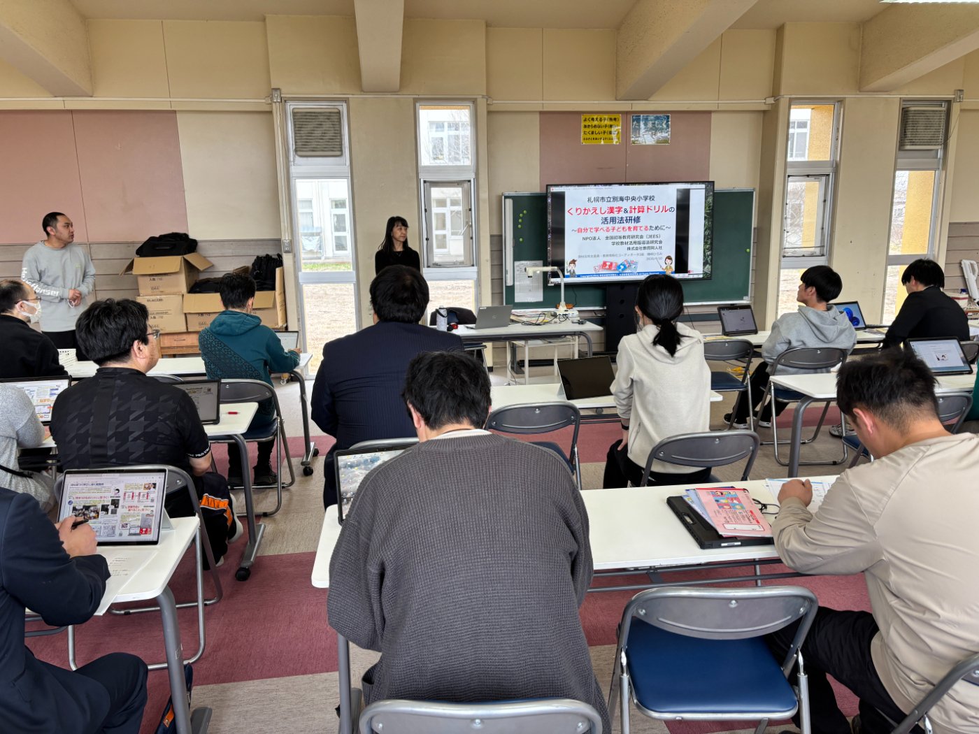 ☆別海中央小学校☆漢字ドリル指導実技研修 2026年04月13日(月) NEW 職員研修 金曜日に講師を招いて漢字ドリル指導実技研修を行いました。講師を招き、繰り返し漢字ドリル、計算ドリル、書き込み式漢字ドリル、計算ドリルの効果的な活用について学びました。学校全体で活用の仕方をそろえることで、学び方が学年を重ねるごとにどんどん定着し、自分で学ぶことができるようになることをねらいとしています。様々な便利な機能も学びました。今週からすぐに全教室で実践しています。 ※画像の転用を禁じます