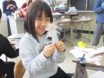 ★上西春別小学校★パタパタストロー 2025年03月06日(木) 授業の様子 2年生が、曲がるストローを使って動くおもちゃ作りに挑戦していました。 上下に動くもの、左右に揺れるもの、いろいろな動きを生かした楽しい工作作品ができあがっていました。