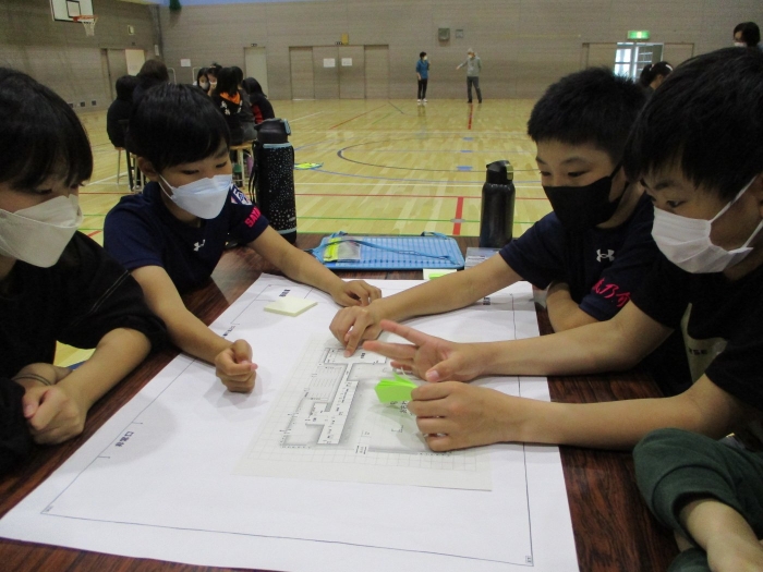 グループで避難所の運営本部となり、避難者に見立てたカードに書かれた情報をもとに避難所運営のシミュレーションを行いました。