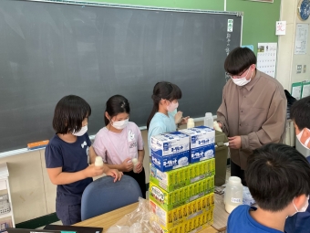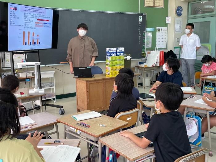 工場で作っている乳製品の作り方や流通ルートなどについてお話していただき、子ども達の質問にもたくさんこたえていただきました。