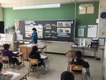 いろいろな資料が用意されていて、クイズや調査、献立作りなどの活動がたくさんある楽しい授業で栄養や給食、食事の仕方などについて教えていただきました。