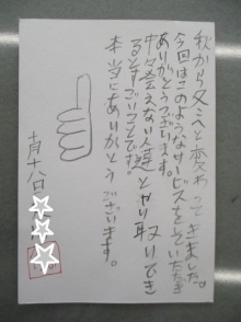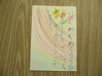ハガキも自分たちで用意しました。2年生手書きの切手がついています。