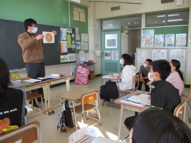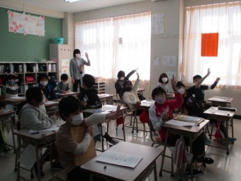 4年生では中学校数学の先生の乗り入れ授業が再開しました。