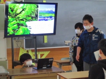 話の進め方や作成したプレゼン資料はもちろん、途中でクイズや問題を挟んだり、近くの友達との意見交流の時間を設けたりと、授業の展開にもこれまでの学びが生きています。