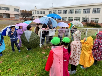幼稚園の園児さんたちには、先週の火曜日に直接手渡すことができました。あいにくの雨でしたが、学校との境のフェンスのところまで来てくれたたけのこ組の皆さんと久しぶりにご対面。