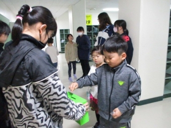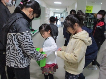 朝の児童玄関では、さっそく協力して募金してくれる子がいました。