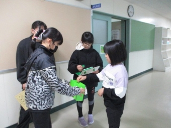 環境委員会では、今日から緑の羽根の募金活動を行っています。