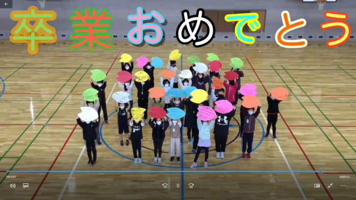 全校児童が集まって6年生を送る会を行うことができないため、下級生は、学年ごとに6年生への感謝とお祝いのビデオメッセージを作って贈りました。